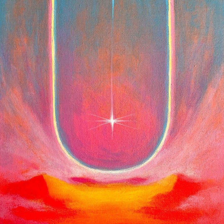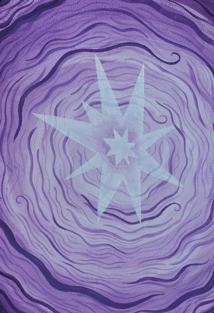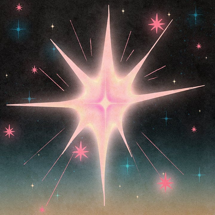 Virgo: dangerously pastel; a pale pink, a baby yellow, many points like a star, each point sharp and able to spear, but also refined, the spear is the arrow that directs, that knows where it’s going.