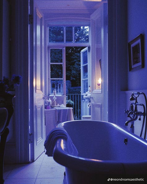Libra: periwinkle. draping, soft and carpeted. The finest of material. Linen? Softer? Something else. A room with many windows in the dusky evening, the smell of crushed lilac, lake water.