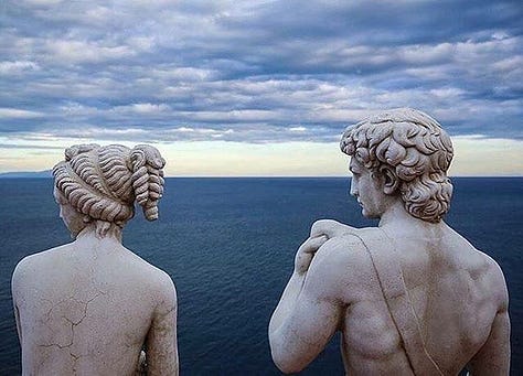 It takes practice, but over time you’ll notice how the characteristics of someone’s big three blend together to give them a signature energy, an ebb and flow in expression. An Aquarius with a Pisces rising exudes a very different kind of energy than an Aquarius with a Scorpio rising. Remember also the modalities we are dealing with, even if the signs are of the same element. Pisces and Scorpio are both water, both highly intuitive and sensitive, but an Aquarius sun (fixed) with a Pisces rising (mutable) is given far more fluidity and ambiguity to work with than an Aquarius (fixed) sun with a Scorpio (fixed) rising. Here, (double fixed) we’re comparing the energy of someone who is significantly set in their direction and uses this water energy to make a path by eroding the stone rather than flowing in all directions.