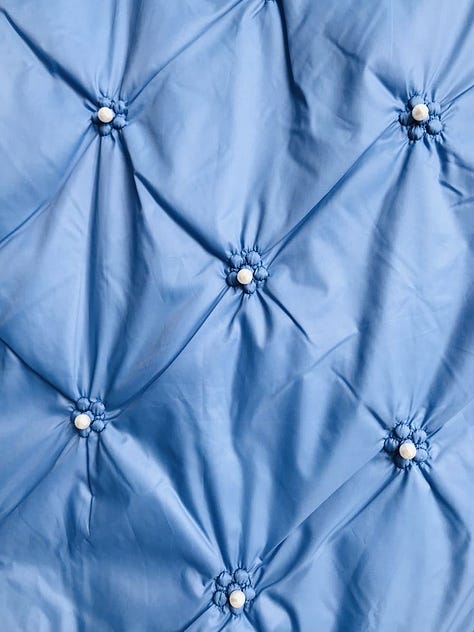 Sagittarius: Royal blue, pinstripe. No beginning or end. No side to side, no boundaries, always expanding, not big and solid like a Capricorn but like sea turning down to space until it’s up. Ships far out with nothing in sight but water.