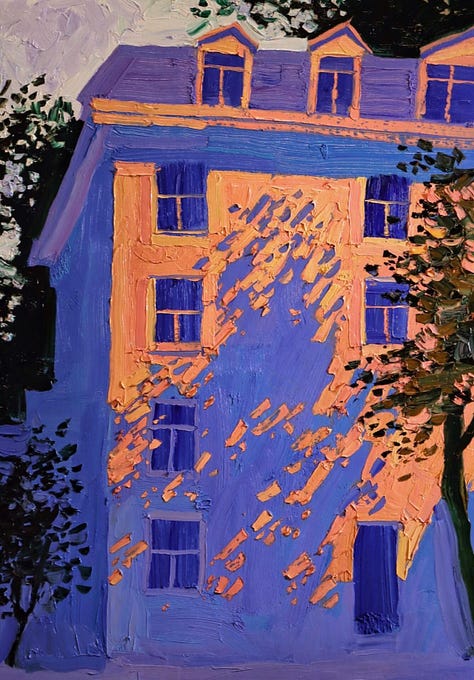 I am an Aries sun, Aries rising and Cancer moon. I am a yellowy, orangey red that is mostly spreading out and bouncing off of things. A Libra sun, Libra moon, Virgo rising is a soft, lilac base with a sharp, defining pink hat like a flamingo (the virgo rising gives sharpness to libra’s roundness.) a Sagittarius sun with a Pisces moon is gem-like, a very rich spread of lapis or royal blue bouncing off the reflective silver of a Pisces moon. A Scorpio with a Leo moon might be a deep burgundy with a proud, gaudy red, the two colors absorbing and consuming one another, whereas a Scorpio sun with a Gemini moon would be a chocolate brown with a bright, emerald green. The signs transform as they converse and absorb one another.